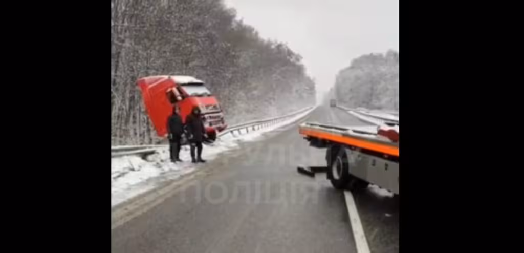 Увага! На трасі «Київ–Чоп» тимчасові ускладнення в русі: вантажівка в кюветі (ВІДЕО, ФОТО)