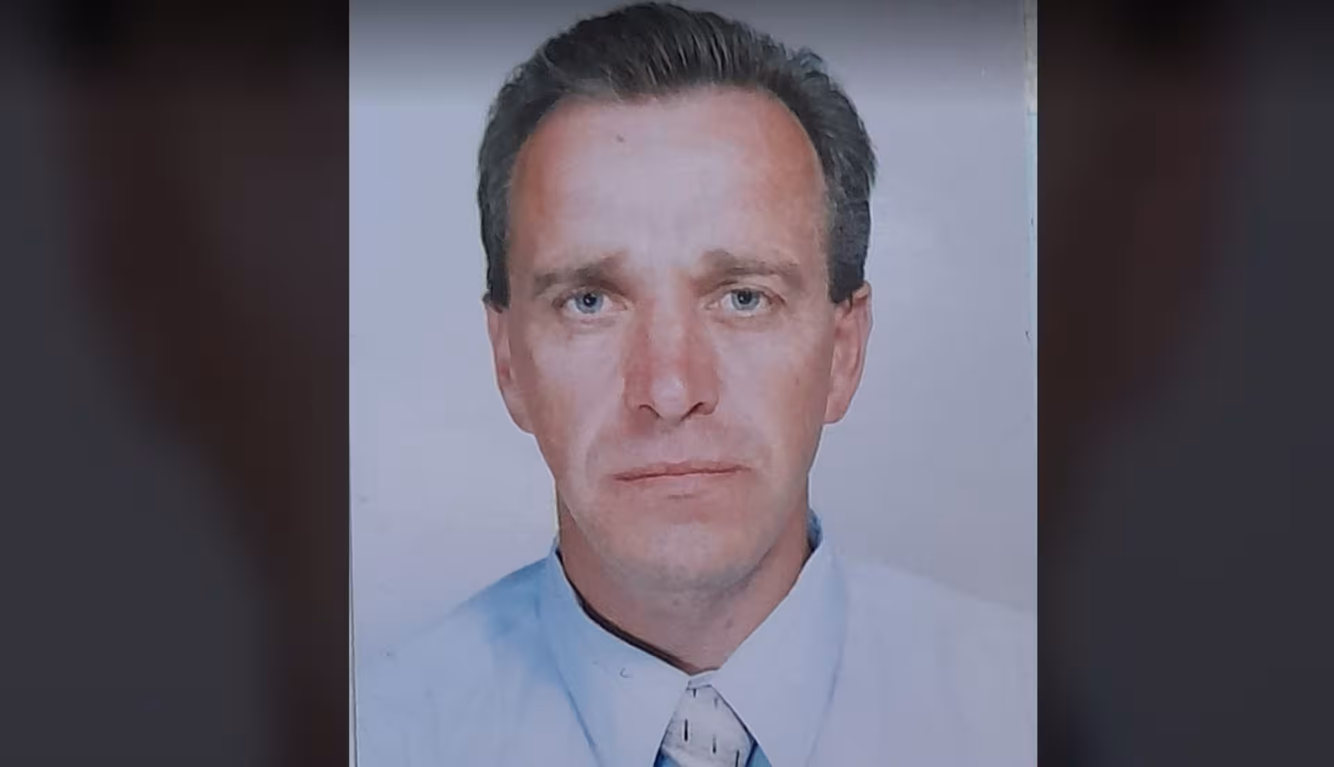 Опис: середньої тілобудови, ріст 1.75 см, волосся сиве, коротке, очі карі, шрам післяопераційний на грудях від операції на серце до 15 см.