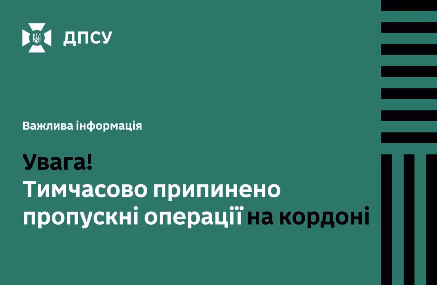 Увага! Тимчасово припинено пропускні операції на кордоні