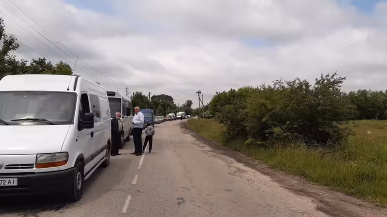 Час від часу люди пропускають автомобілі — приблизно раз у 20 хвилин дають можливість проїхати трьом машинам з однієї та іншої сторони. Про обидва боки пішохідного переходу, яким ходять протестувальники, утворилися затори із вантажівками, рейсовими автобусами та легковиками.