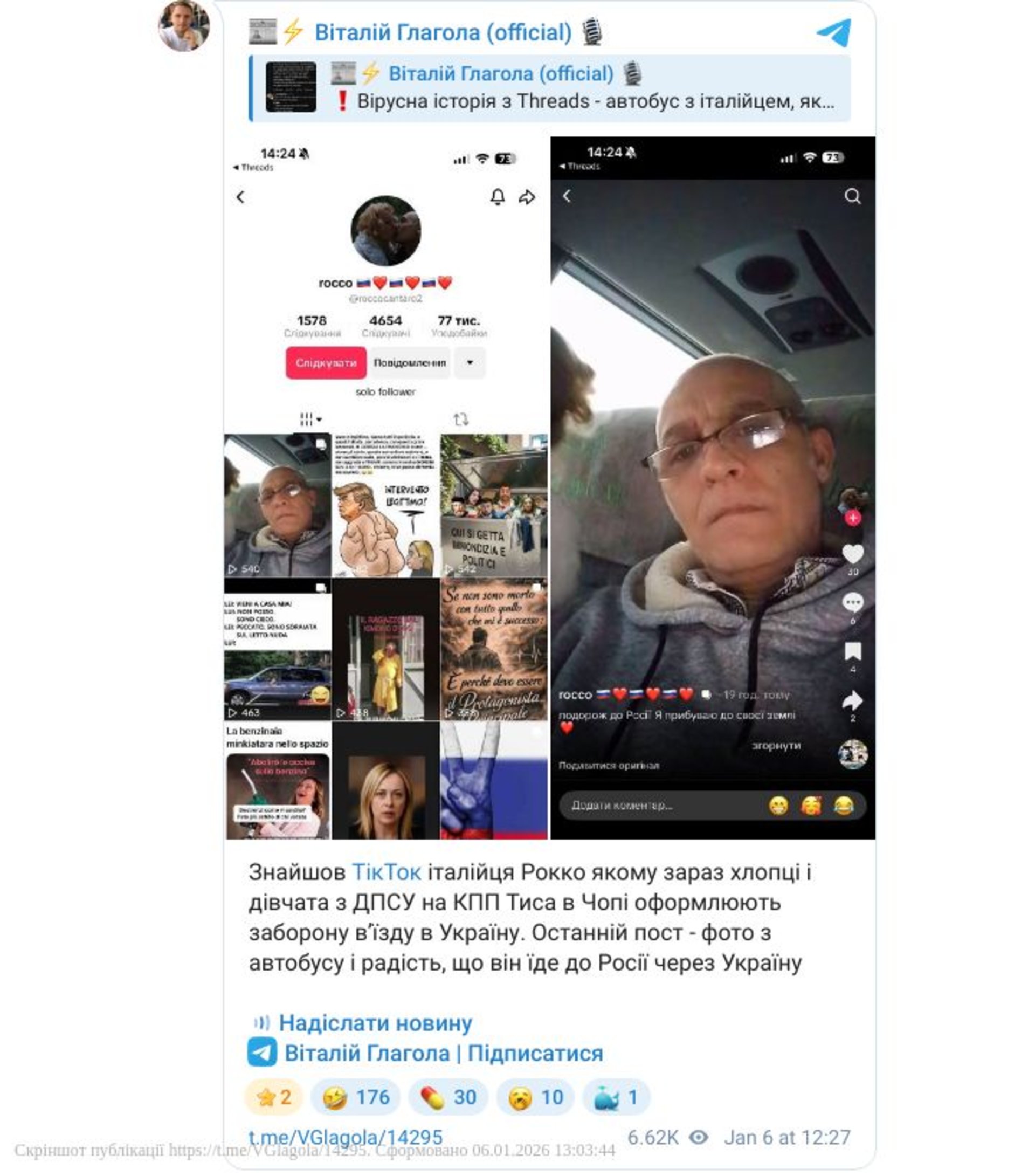Як інформує «Фокус», історію про італійця, який їде на кордон України двоповерховим автобусом, опублікувала в Threads 6 січня українка Дар'я під ніком d__melnichenko. За її словами, чоловіка звати Рокко.