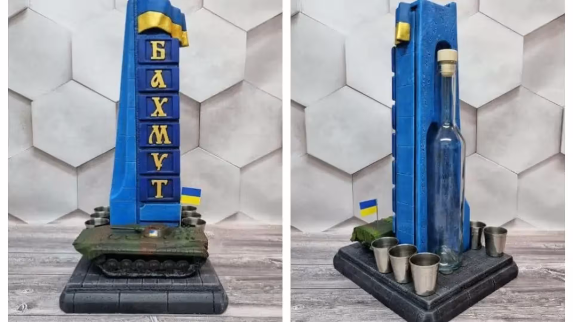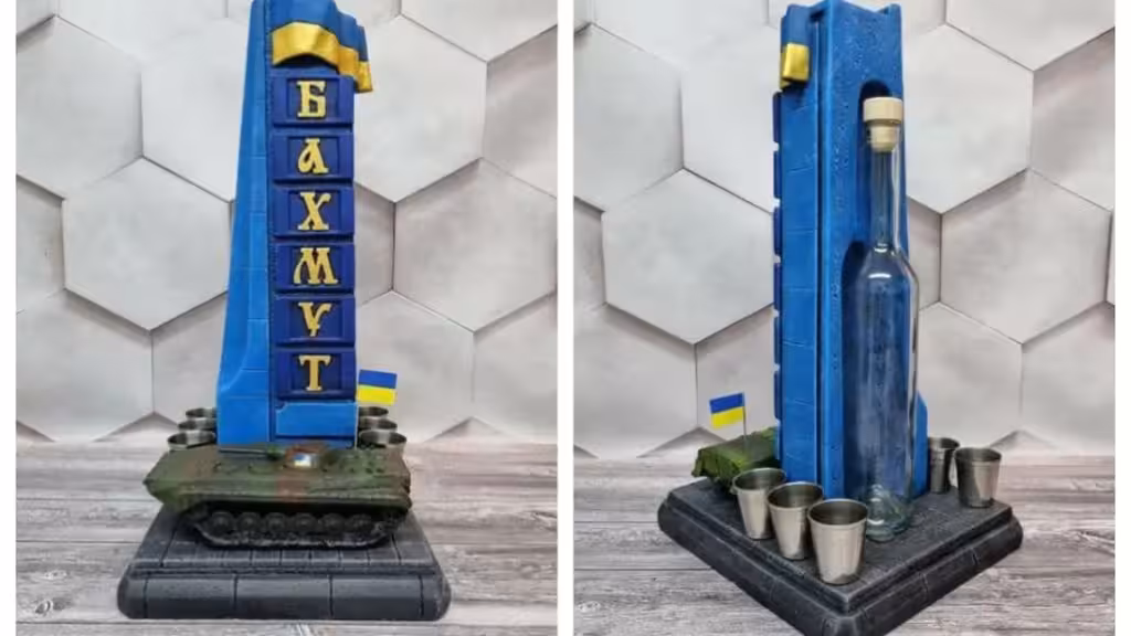 Користувачі мережі звернули увагу на фігурку зі стелою Бахмута, яку вирішили використовувати як штоф (підставка) для алкогольних напоїв.
