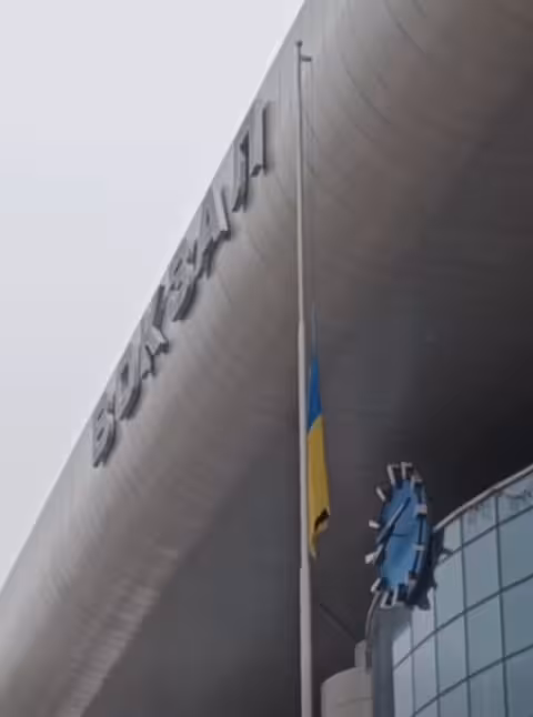 Укрзалізниця приспустила стяги над усіма вокзалами країни на знак пам’яті про пасажирів, чиє життя забрав ворог, атакувавши 27 січня пасажирський поїзд