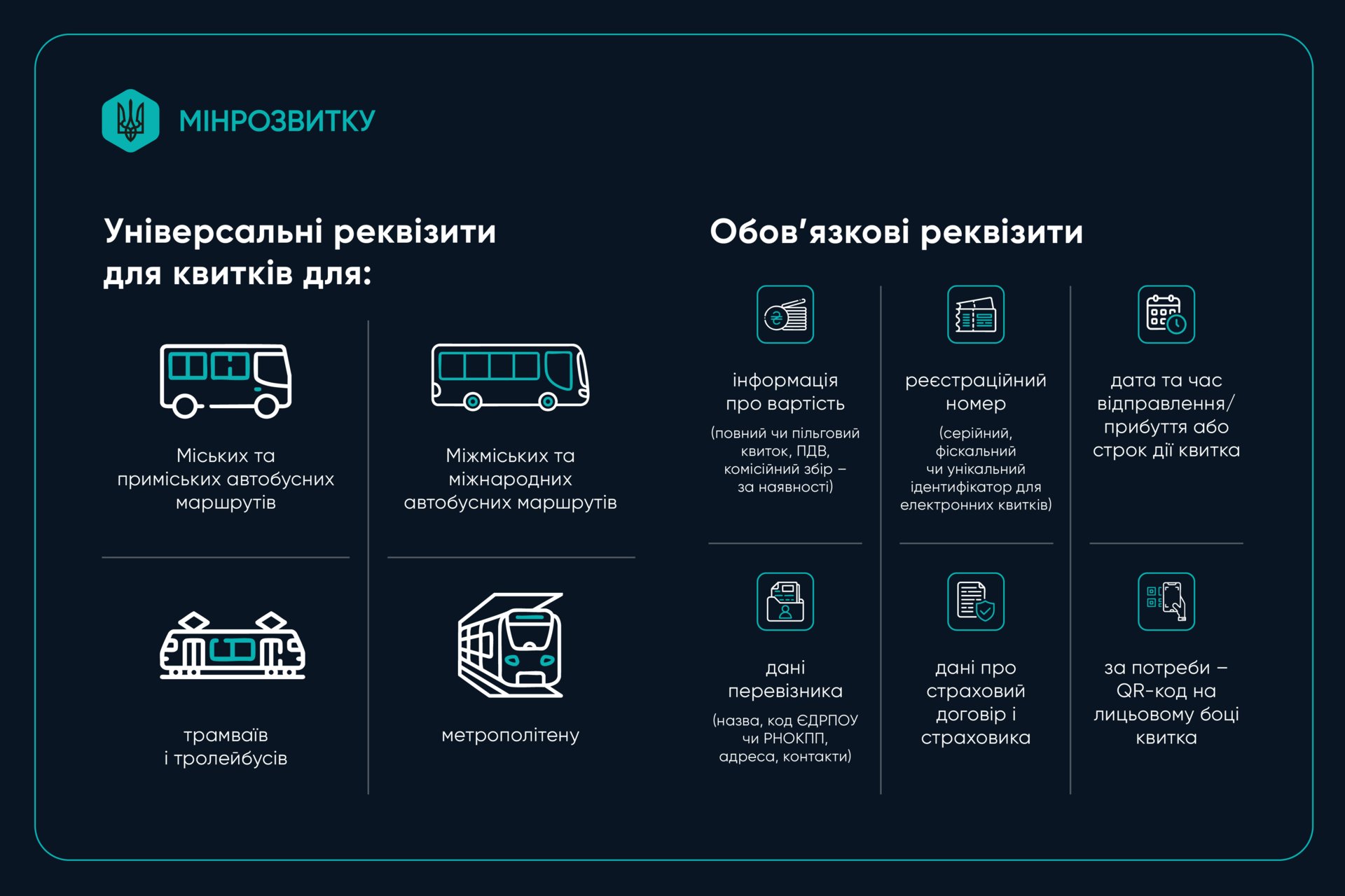 З 1 січня 2026 року в Україні набула чинності нова єдина форма квитка для всіх видів громадського транспорту, затверджена Наказом Мінрозвитку № 1066.