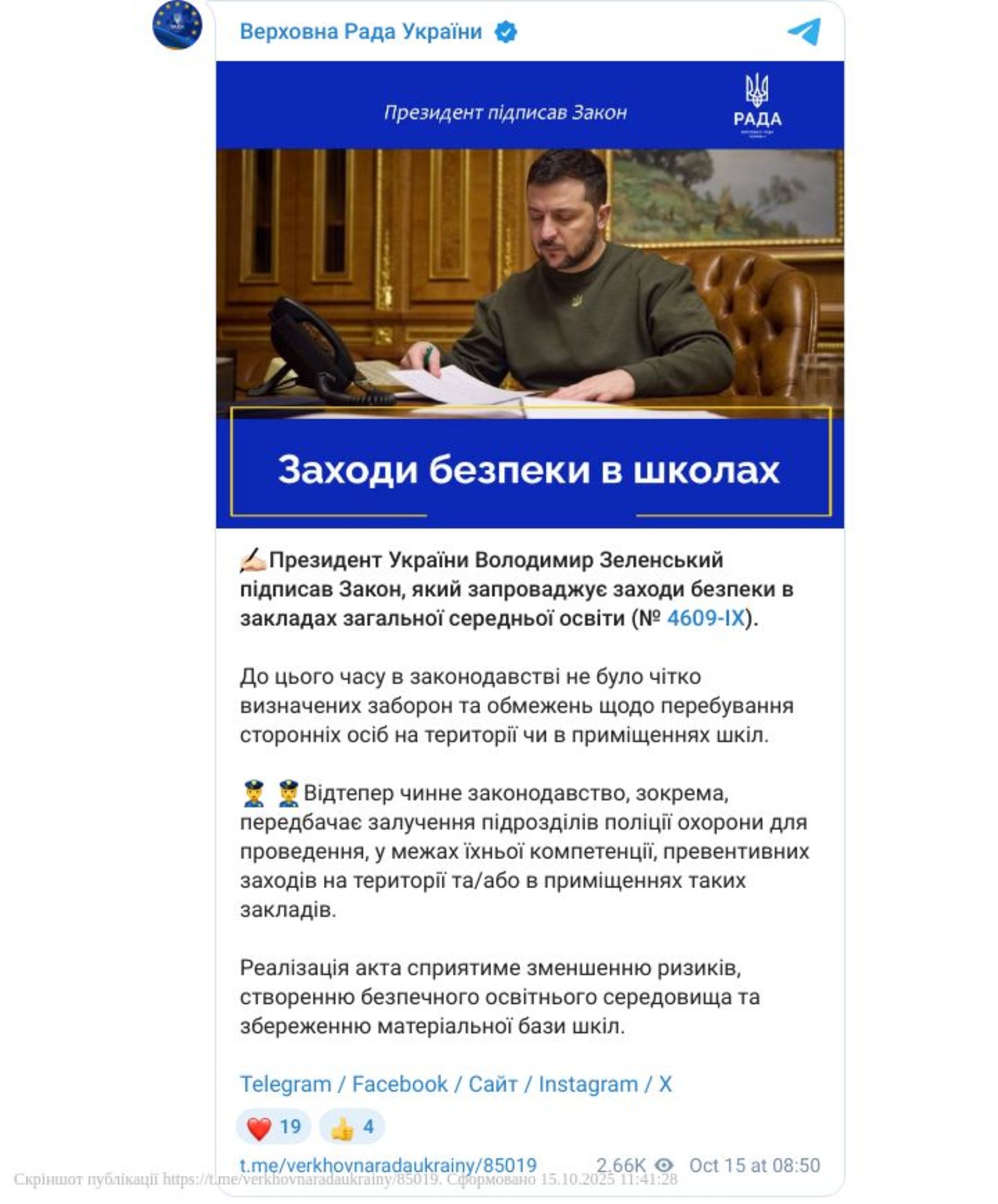 На територію навчального закладу можуть заходити тільки учасники освітнього процесу - вчителі, учні і батьки, а решта - за дозволом. Президент України Володимир Зеленський підписав Закон, який запроваджує заходи безпеки в закладах загальної середньої освіти, повідомили у ВРУ.
