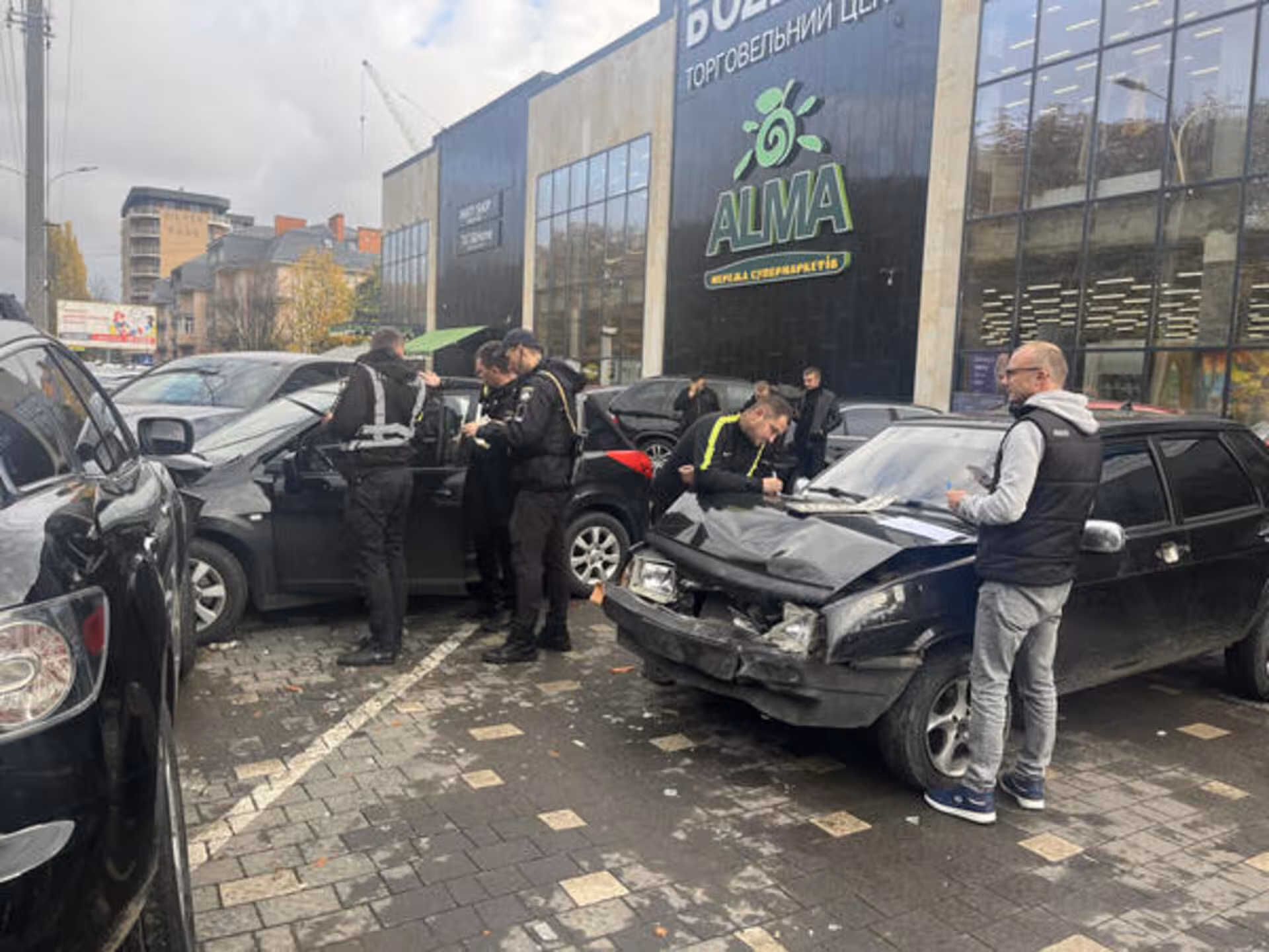 Там автомобіль зіштовхнувся відразу з декільками автомобілями. Стався ефект доміно і всього було пошкоджено 6 автомобілів.