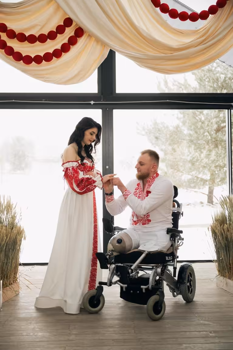 29-річний ветеран та пацієнт центру UNBROKEN Тарас Левкович і його 22-річна кохана Вікторія побралися у неділю, 15 лютого. Про це повідомили в центрі UNBROKEN. Саме там, у центрі UNBROKEN, раніше ветеран і освідчився своїй коханій.