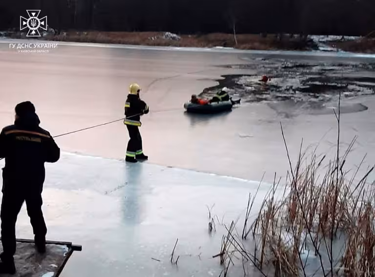 З-під криги: на Київщині рятувальники витягли двох чоловіків з водойми (ФОТО, ВІДЕО)