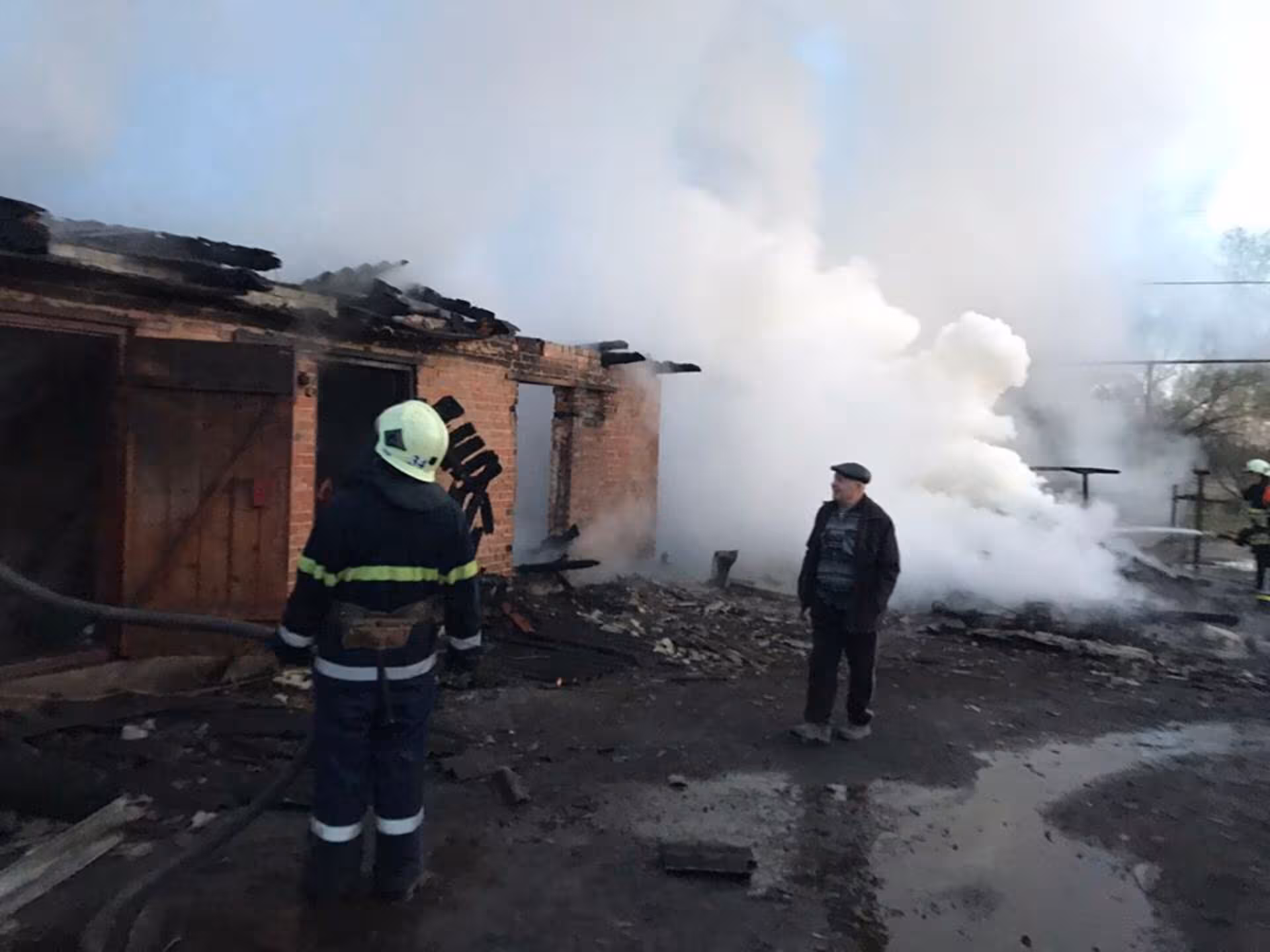 На момент прибуття вогнеборців до місця виклику вся будівля була охоплена вогнем, полум'я вже перекинулось на сусідню цегляну господарську будівлю.