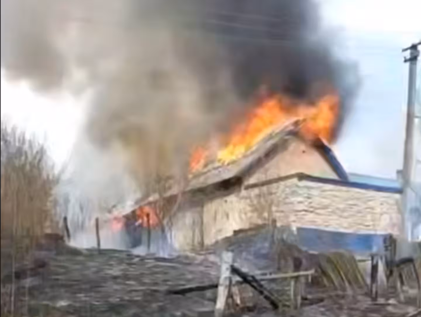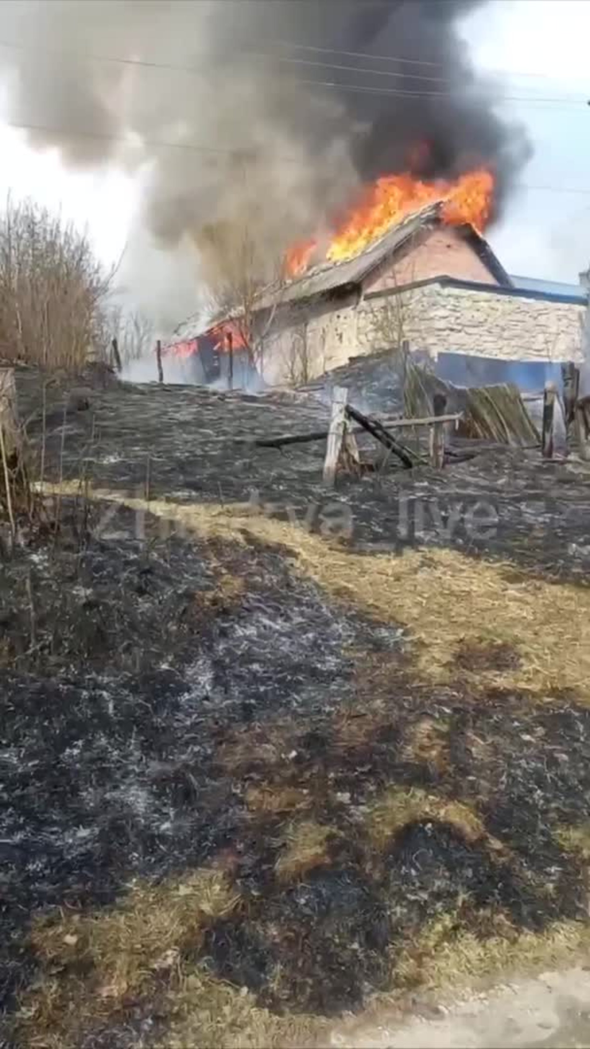 На відео видно навколо згарище, а також палаючий будинок. Про постраждалих наразі невідомо.