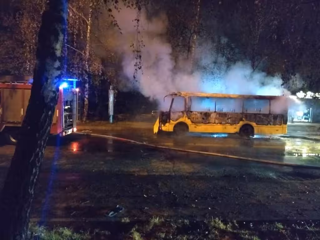 Вночі у Чернівцях, посеред вулиці, вщент вигоріла маршрутка (ФОТО, ВІДЕО)