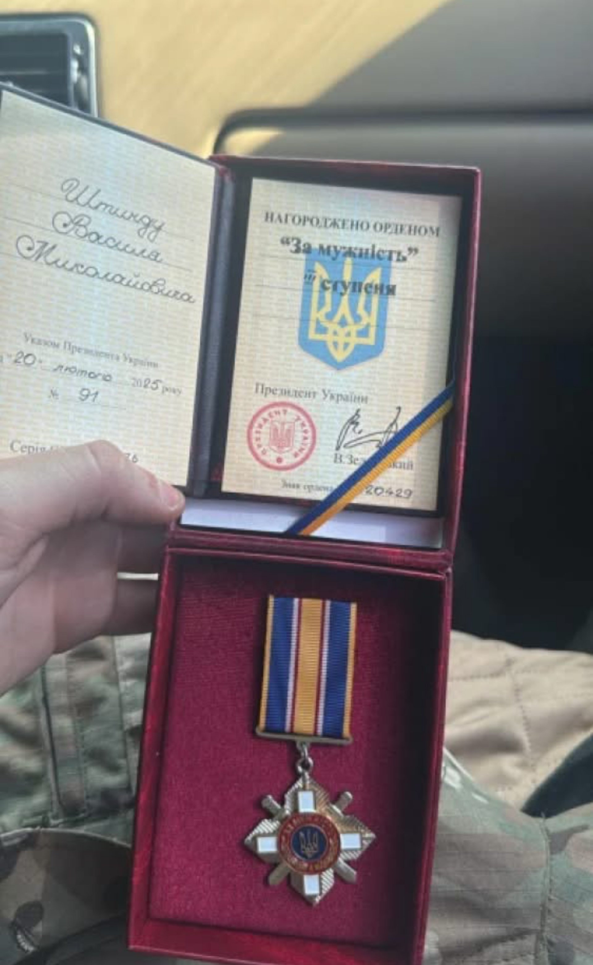 За особисту хоробрість і героїзм, виявлені в захисті України, нагороджено Василя Штинду.