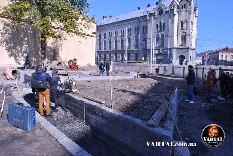 Як відбувається облаштування простору під скульптурну композицію до 100-річчя ЗУНР у Львові (фото, відео)