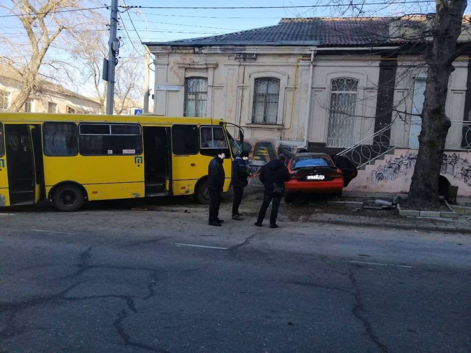 Сьогодні, 15 лютого, близько 09:05 год, у «Єдиний центр 102» поліції Херсонщини надійшло повідомлення про дорожньо-транспортну пригоду в Херсоні. Чоловік, який зателефонував у поліцію, розповів, що на вулиці Театральній сталося зіткнення маршрутного автобуса та легкового автомобіля.