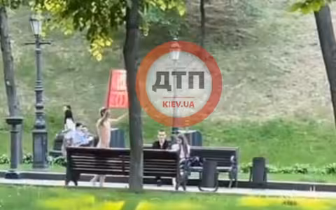 З'явилось відео, чоловіка який ходив голим в одному зі столичних парків з плакатом «воювати гріх»