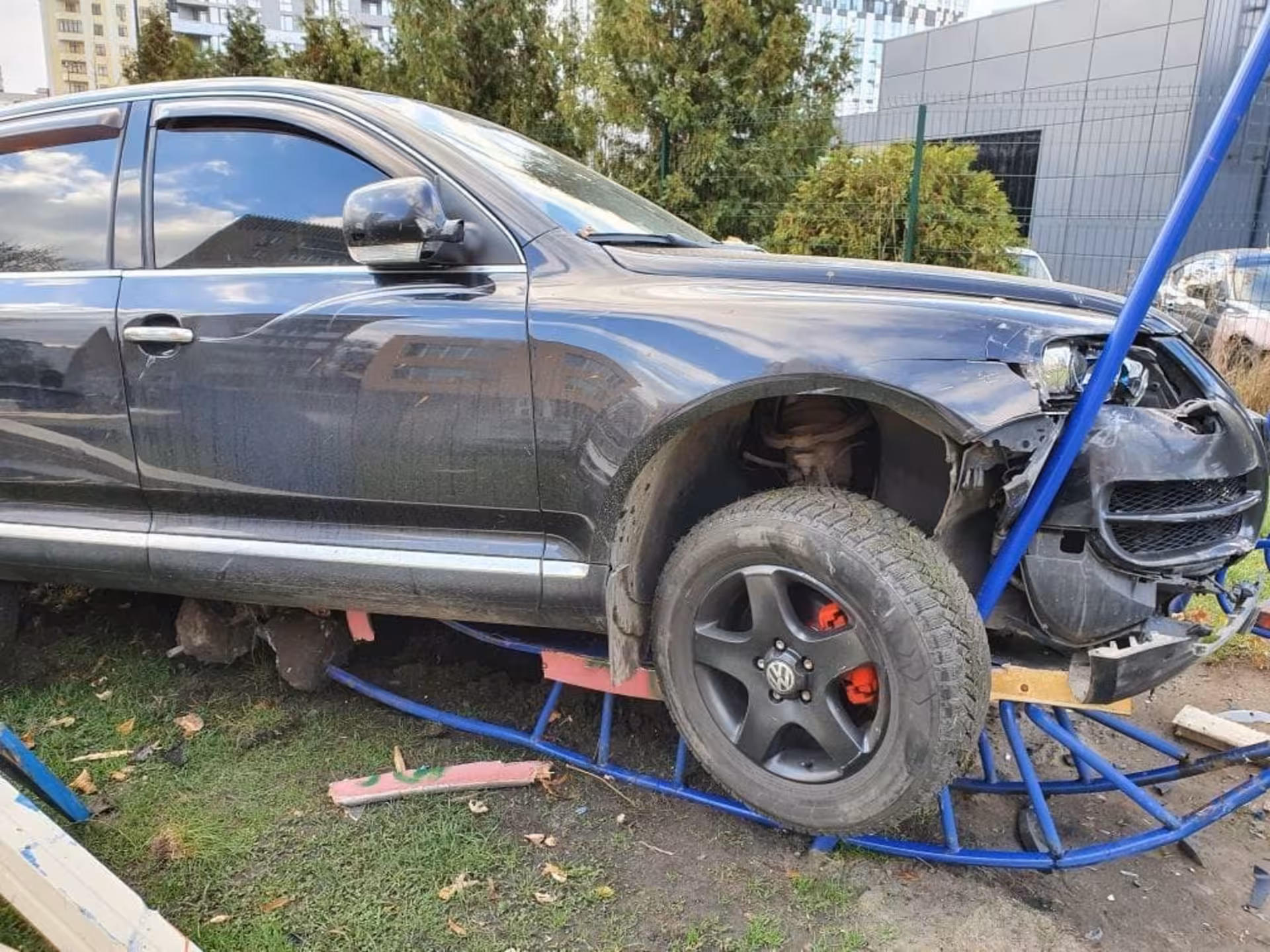 Як розповіли очевидці, водій «Volkswagen Touareg», перебуваючи у стані сп’яніння (за зовнішніми ознаками) в’їхав на дитячий майданчик, зніс гірку та завис на гойдалці. На своєму шляху розбив дві припарковані автомобілі.