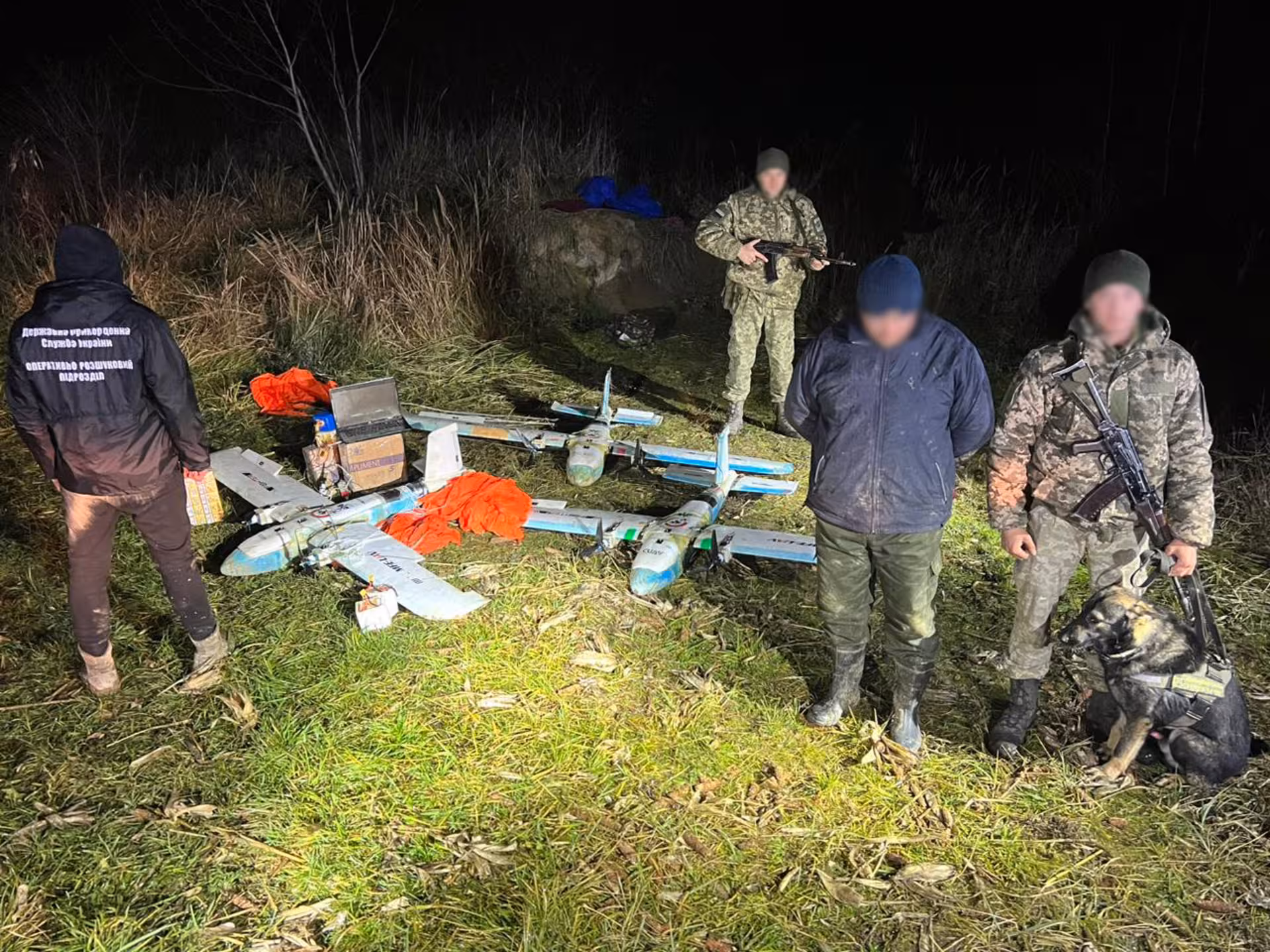 «За одинадцять кілометрів від державного кордону прикордонники відділу «Вилок» спільно з оперативниками загону виявили місце злету «повітряних» контрабандистів, на якому знаходились три дрони літакового типу, змінні батареї до них, пульти управління та ноутбук із позначеним на ньому маршрутом польоту, а також три пакунки тютюнових виробів без акцизних марок», – йдеться у повідомленні.