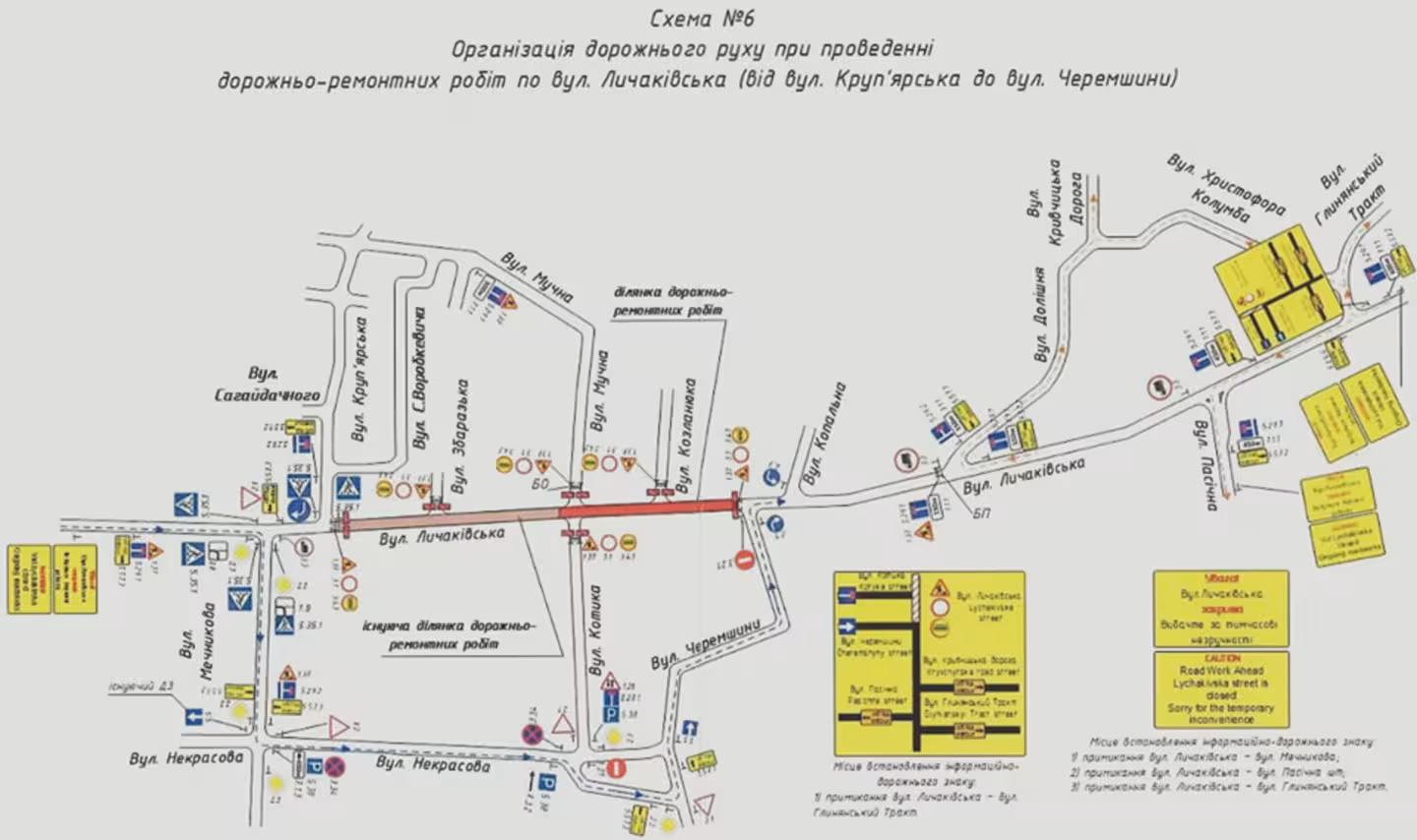 Завтра буде перекрито рух транспорту по вул. Личаківській від вул. Круп'ярської до вул. Черемшини