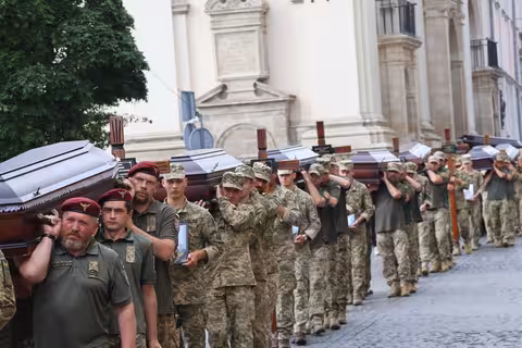 «В Україні офіційно на полі бою кількість загиблих військовослужбовців, чи то кадрових солдатів, чи то мобілізованих, становить 55 000 загиблих», – сказав він.