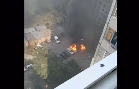 На опублікованих кадрах видно полум’я в квартирах, дим над будівлею та палаючі автівки у дворі.