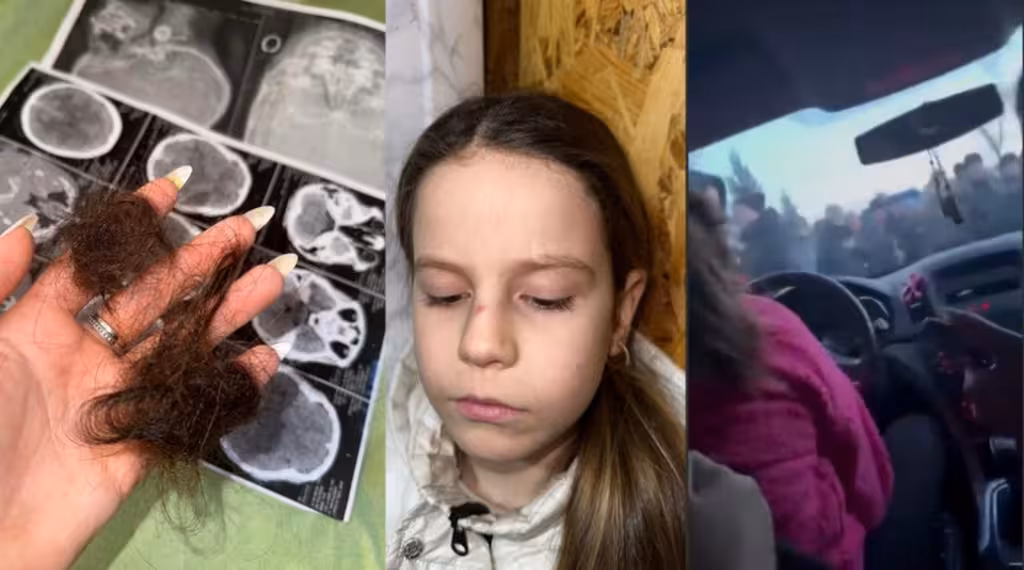 Після цього натовп почав бити машину та намагатися її перевернути, почали витягувати потерпілу через вікно, виривати волосся і вирвати ключі з машини. Коли жінка почала кричати, що в машині дитина, одна із жінок запхала біту у вікно і вдарила нею по голові дитину. Інша жінка у цей час тримала потерпілу за волосся.