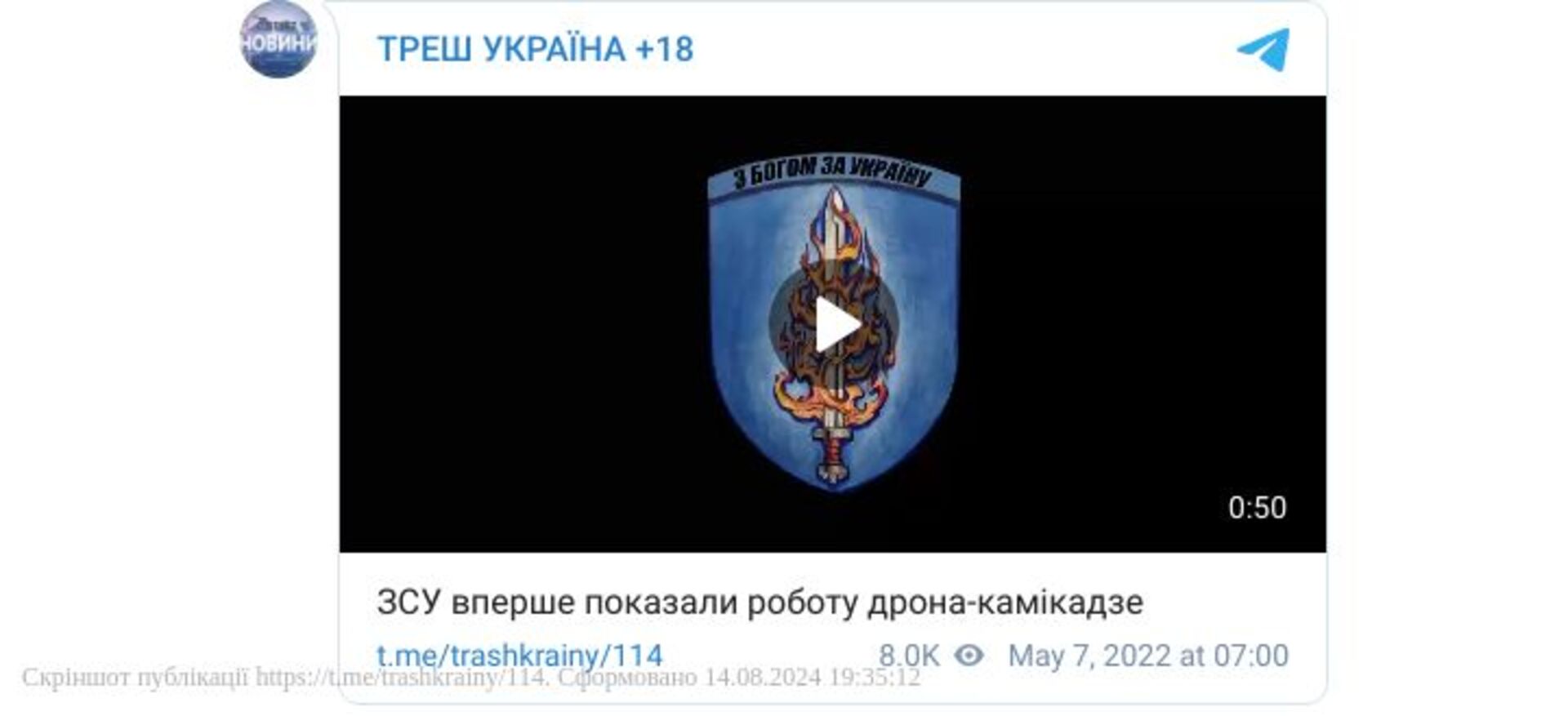 ЗСУ вперше показали роботу дрона-камікадзе (відео)