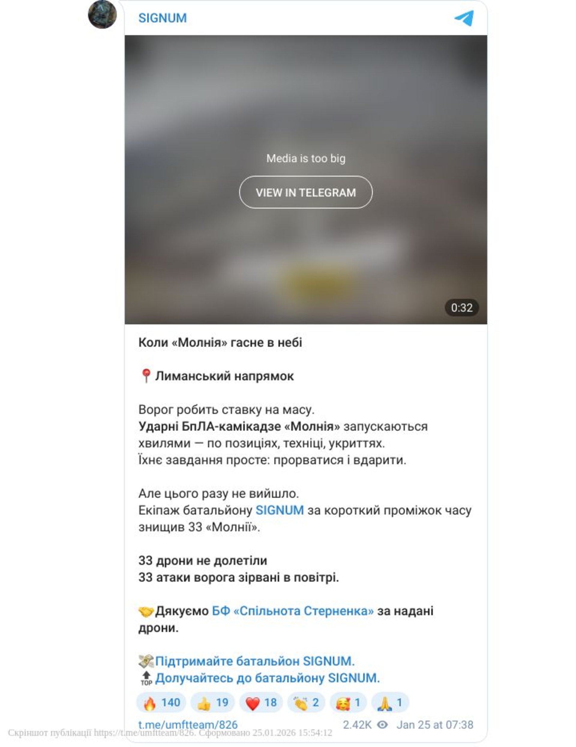 За даними військових, за короткий проміжок часу операторам дронів вдалося ліквідувати 33 ворожі безпілотники-камікадзе типу «Молнія».