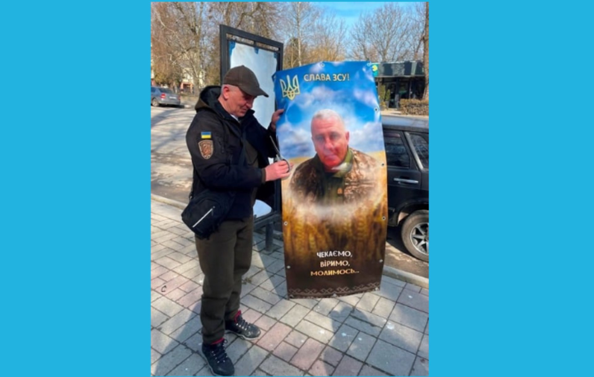 Звільнений після полону воїн власноруч зняв свій портрет встановлений на центральній алеї у місті Тлумач (ФОТО)